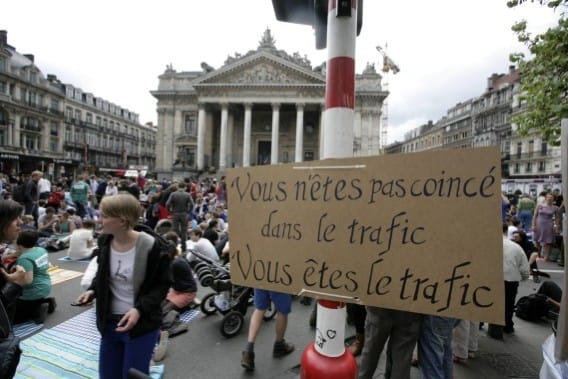 Philippe Van Parijs, professeur à l’Université Catholique de Louvain, dans une carte blanche du journal LE SOIR le 24 mai, a lancé l’idée d’un pique-nique sur le boulevard Anspach en plein centre-ville le dimanche entre midi et 14h pour se réapproprier l’espace public envahi par les automobilistes. Le lieu proposé se situait entre la place de Brouckère et la Bourse. La Ville de Bruxelles n’a pas autorisé cette manifestation mais l’a tolérée et celle-ci a été encadrée par la police. Vu le nombre de participants, ceux-ci ont été rassemblés sur la place de la Bourse avec quelques débordements sur le boulevard Anspach et la rue Auguste Orts face à la Bourse. A 14h30, les policiers ont demandé aux pique-niqueurs de partir.
