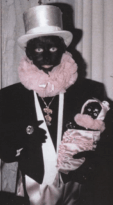 Se teindre le visage en noir n’est pas un choix neutre non plus. Communément appelé « Blackface » (« visage noir »), ce maquillage a une histoire ancrée elle-aussi dans la colonisation et le racisme. Cette pratique, qui se développe en Europe et aux Etats-Unis en parallèle des différentes vagues de colonisation dès le XV° siècle, se généralise au XIX° siècle. Elle consiste à produire une représentation caricaturale d’une personne noire notamment en se peignant le visage et les lèvres et en se munissant d’une perruque frisée. Une pratique qui n’est pas l’exclusivité des Noirauds en Belgique mais qui se retrouve également dans les rues et les écoles belges en décembre, avec la figure du Père Fouettard lors de la Saint-Nicolas.
