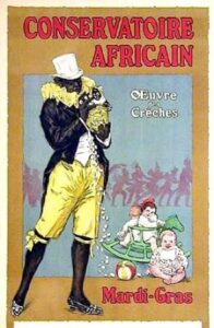 Les Noirauds reconnaissent ainsi que leur peau temporairement noire et leur costume les rend invisibles tout en les excluant momentanément du corps citoyen, dans un contexte national qui refuse de reconnaître son passé colonial. Ce costume n’est pas neutre. Il met en scène de manière grotesque un fantasme colonial du XIX°siècle sous couvert de bonne humeur et d’action caritative. Si l’asbl a aujourd’hui dans son intitulé « Conservatoire Africain », c’est tout simplement que cette quête publique annuelle est accompagnée d’une « joyeuse fanfare »[5]. Cette appellation décrédibilise totalement les cultures africaines dans leur diversité et leur valeur culturelle et humaine. La musique africaine, ce n’est pas de la culture, rions-en !