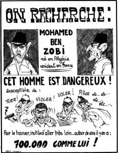 La sexualisation des hommes indigènes les transforme en potentiels violeurs méritant d’être mis hors de nuire avant d’agir. Cela se traduit judiciairement : dans les années 70, les « prolétaires et les immigrés » représentent la majorité des condamnés pour viol, alors que ce crime est commis dans toutes les classes sociales. Une étude menée par Pierre Seguret, et citée par Todd Sheppard chiffre à 38% la proportion d’immigrés nord-africains parmi les condamnés pour viols en 1978[xxiii]. Véronique Blanchard a consacré une thèse de doctorat à la déviance féminine juvénile dans les années 40 et 50[xxiv]. Abordant la question du contact qu’entraîne l’augmentation de l’immigration algérienne à partir de 1947, elle décrit de quelle manière les rapprochements entre adolescents Algériens et jeunes Françaises sont proscrits par les parents de ces adolescentes, qui n’hésitent pas à recourir à la justice. Fréquenter des Nord-Africains est tellement interdit qu’il arrive que des jeunes filles, à postériori, produisent un « discours archétypal autour de la dangerosité des « Nord-Africains » et du fameux mythe de « la traite des blanches », pour se protéger d’éventuelles répercussions[xxv]. Ce mythe d’une perversité arabo-musulmane n’a pas disparu, il se déploie aujourd’hui dans les discours occidentaux culturalistes sur l’islam[xxvi].