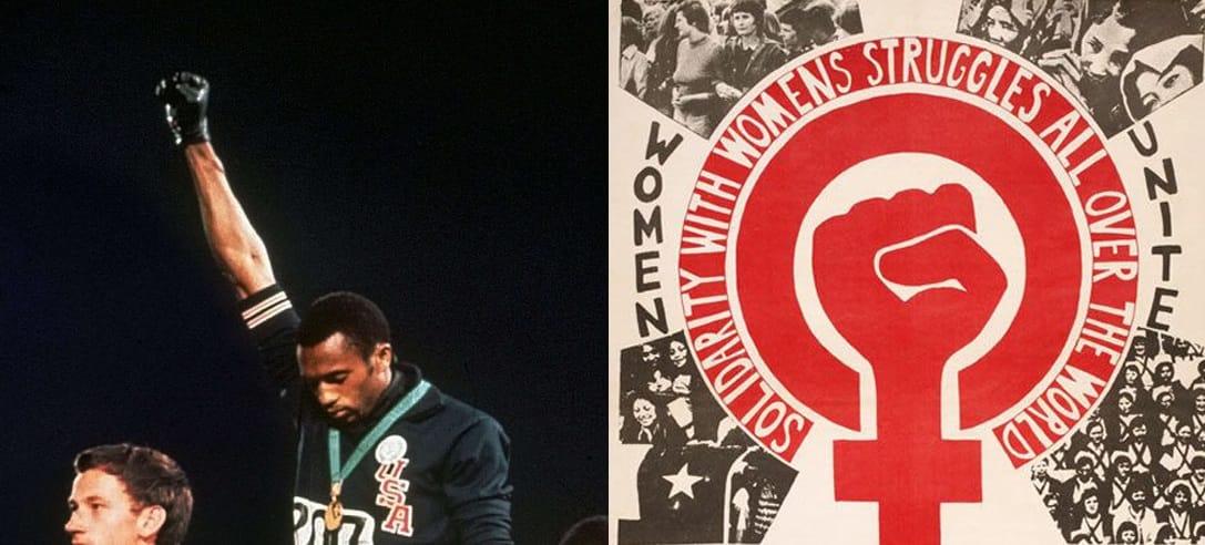 - John Carlos et Tommie Smith brandissent aux JO de Mexico le poing ganté de noir, signe du pouvoir noir.
