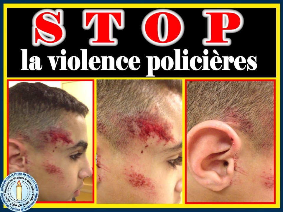 «Ils m’ont insulté de tous les noms: fils de p…, sale arabe…» J’ai eu deux coups de matraque. En me mettant par terre, une policière m’a serré les menottes pendant que ses collègues me frappaient. Y avait un policier qui me donnait des shots sur mon visage. Ensuite, ils m’ont plaqué contre le capot d’une voiture»…