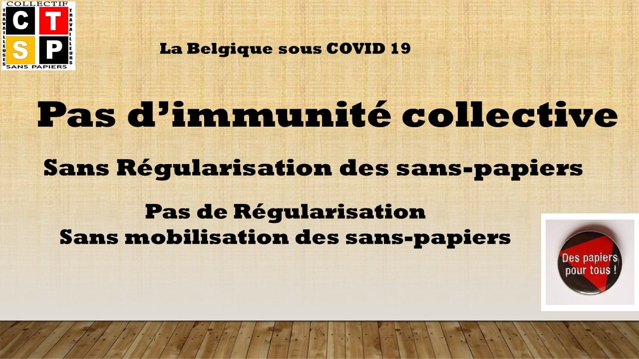 Nous encourageons les habitants domiciliés dans différente communes bruxelloises, à envoyer des e mails aux élus locaux, pour les inciter à voter une motion en faveur d’une régularisation ( sous covid19), car nous sommes persuadés qu’ils n’y aura pas d’immunité collective sans régularisation des personnes sans-papiers .