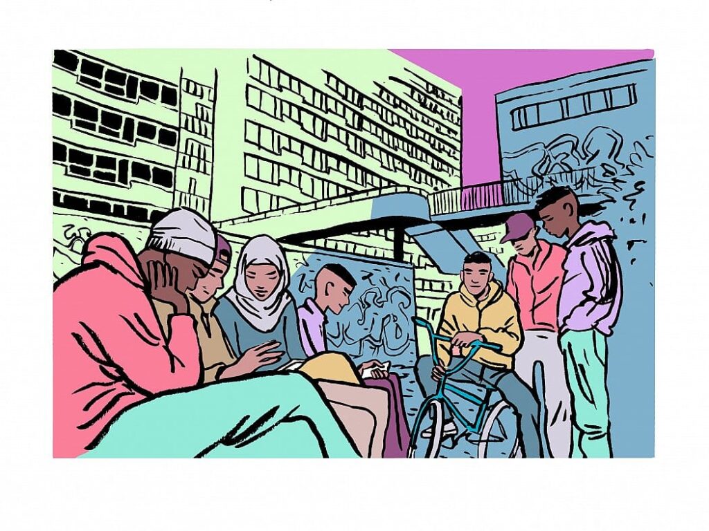 Par rapport à la drogue, je prends toujours l’exemple : moi avec 5 grammes de shit, je me promène dans la ville, je risque de me faire contrôler. Et après le contrôle, la fouille. Mais un Blanc avec 50 grammes de coke sur lui, il peut rouler en Mercedes dans toute la ville. Il va se faire arrêter, il va dire : « Oui vous pouvez m’indiquer la chaussée de Mons ». Ils vont le guider jusqu’à la Chaussée de Mons. D’ailleurs, il n’y a pas de raison que la guerre contre la drogue aux États-Unis soit une guerre raciale – qu’elle amène plus les Noirs à être en prison, plus les Noirs à avoir des casiers, plus les Noirs à pas avoir de boulot – et qu’ici ça soit juste une mesure politique qui fait qu’on contrôle la drogue et les jeunes et qui n’a rien de racial. Mais donc on connaît tous des gars du quartier qui sont à Saint-Gilles pour 5 grammes, 6 grammes, 15 grammes. Et ça aussi, un beau travail à faire : qui ouvre les magasins de CBD ? Moi ça me trotte ça, ça me trotte. Comment ça se fait que les experts en drogue cannabis/herbe, donc ceux qui sont en prison, ne soient pas les bénéficiaires de la légalisation ?