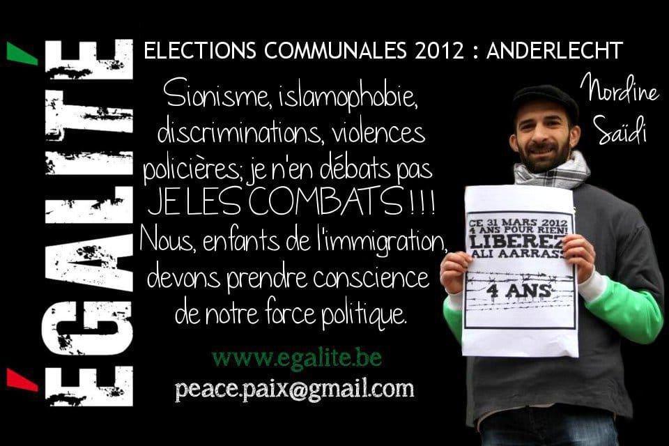 Pour amplifier et faire connaître ses luttes contre les discriminations, Egalité, qui regroupe des militants de toutes origines et confessions s’est présenté aux élections régionales en juin 2009 (4 289 électeurs), puis aux législatives fédérales en 2010, à Bruxelles-Hal-Vilvorde (5 670 électeurs)